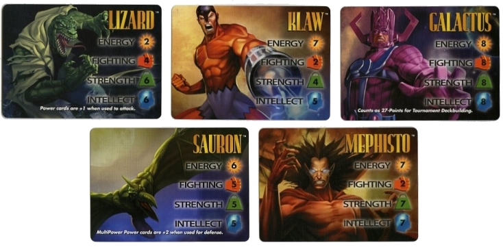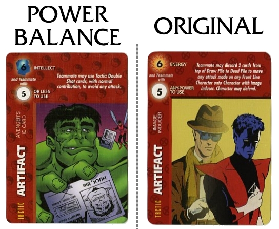The back of the instruction manual has a table of all the updated Point Values for each character. Unfortunately, only all the 4-stat Marvel characters could fit on this sheet. Point Values for all DC, Image and 3-stat Marvel characters can be downloaded from The Rules section at the very top under "Quick Downloads". The font is the same as the instructional text on Special cards, and the little Overpower diamond makes an appearance here as well.